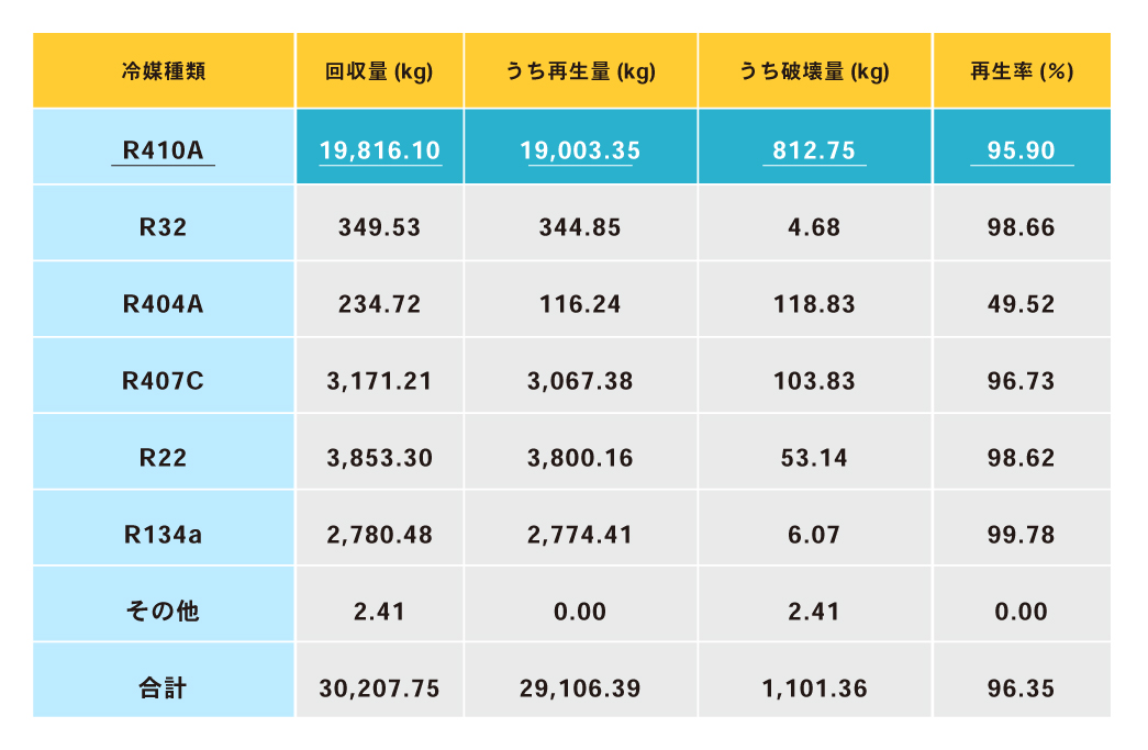 各フロンガスの再生率を、